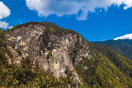 Taktshang Goemba(Tiger's Nest Monastery), the most famous Monastery in Bhutan, in a mountain cliff.