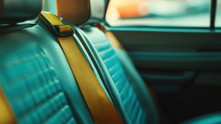 Sunlight filters through a vehicles window, illuminating seat belts that emphasize safety and comfort for passengers during travel.