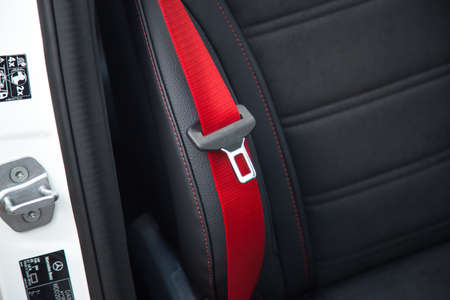 Close up of red car seat belt