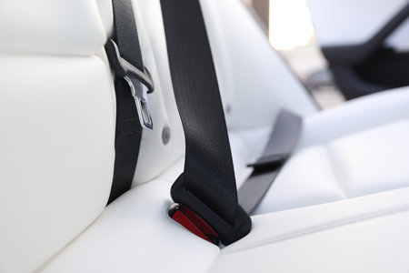 Close up of a passenger seat belt for safety in the modern car interior, passenger safety concept background