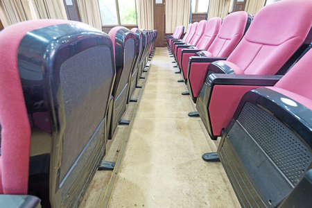 vintage tone image of empty auditorium room and row of chair for background usage.
