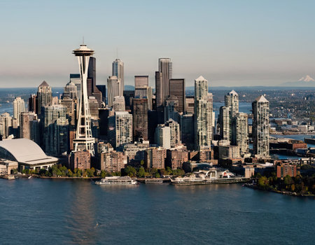 View of Seattle Downtown Skyline with Clear Blue Skies