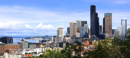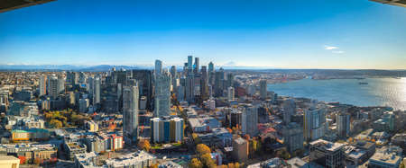 Seattle, Washington D.C. USA - April 06, 2021: panorama seattle skyline with skyscraper buildings