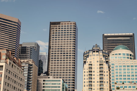Modern city skyline. Cityscape with business building. Skyscraper cityscape of metropolitan city architecture. Business district. Cityscape with skyscraper architecture. Urban cityscape