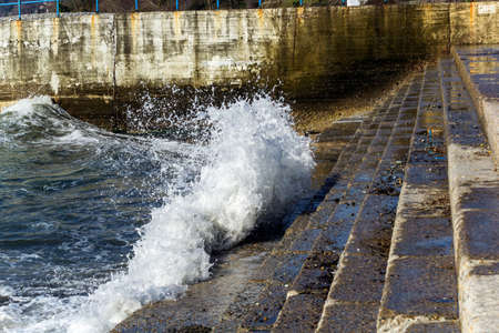 Splashing wave on the Black sea in the sunny day.