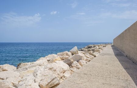 Seaside stone embankment with blue sky