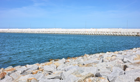 Sea breakwater and rock embankment.