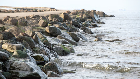 dam made by big stones on the ocean shore