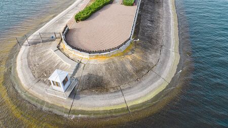 Aerial top view from drone to the seacoast and concrete pier