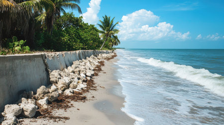 Explore a beautiful beach scene featuring palm trees and gentle ocean waves. This tranquil shoreline offers a perfect escape into nature and relaxation.