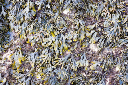 Natural background with texture of Seaweed Fucus spiralis on the stone