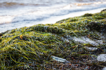 Seaweed on the shore of the Baltic Sea. Selective focus.