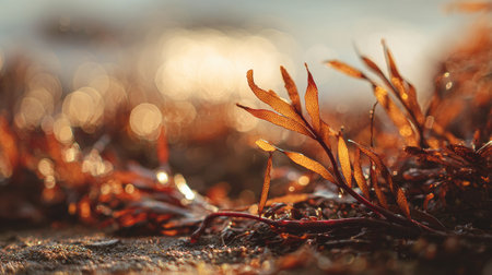 vibrant seaweed on sunny sea shore