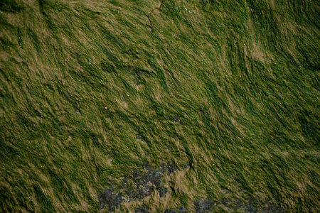 greenery background of underwater grass at low tide on the ocean coast in spring