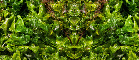 Broad left fresh green algae, pieces of seaweed fresh from the sea