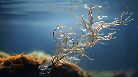 close-up of kelp forest, with single strand and delicate fronds, created with generative ai
