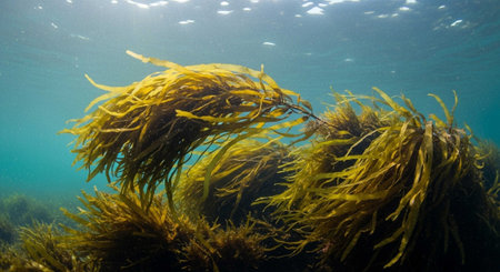 kelp and algae underwater in the sunlight,