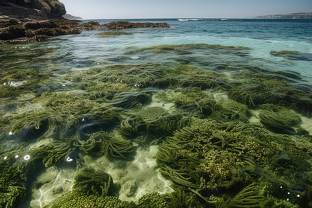 vibrant seaweed on sunny sea shore