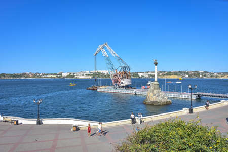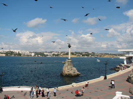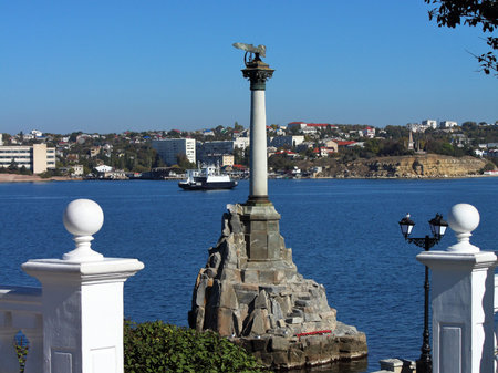 Monument to scuttled Russian ships to obstruct entrance to Sevastopol bay. One of symbols of Sevastopol.Crimea, Russia