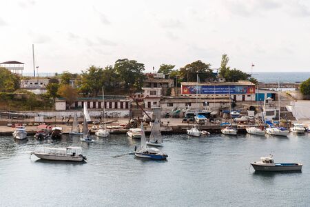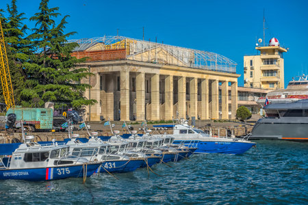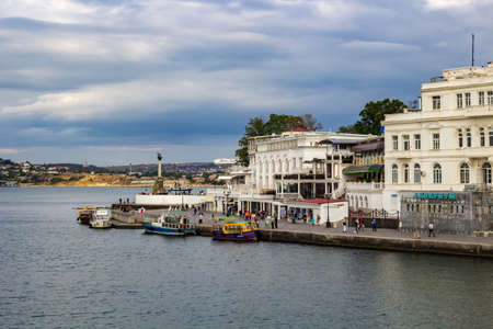 View of the embankment and pleasure boats in Sevastopol in the Crimea. September 30th. 2020 Travel Concept