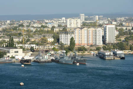 SEVASTOPOL, CRIMEA - SEPTEMBER 2014: View of Sevastopol from Malakhov Kurgan. Ship side