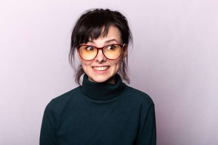 Portrait of a positive beautiful young woman in elegant glasses. Business style. Glasses fashion.
