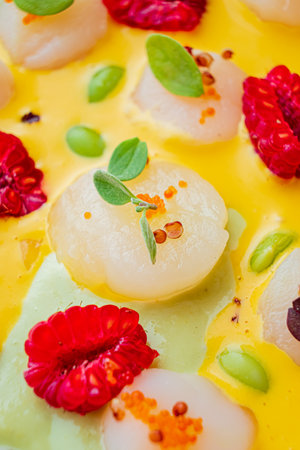 Freshly caught scallop on its shell offered by the fisherman on his boat