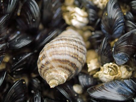 Macro close up of seashells on the beach