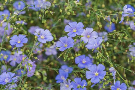 Flax field- summer background. Agriculture landscape- beautiful flowers
