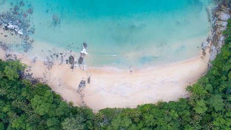 Amazing beautiful beach Aerial view of Tropical beach sea in the beautiful Phuket island Located at Laem Sing beach Phuket Thailand on October 30-2021