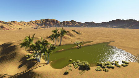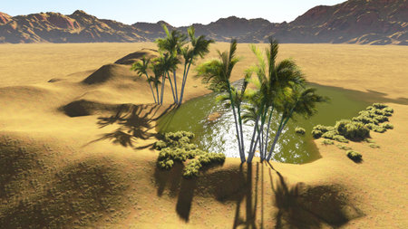 Oasis in the desert made in 3d software