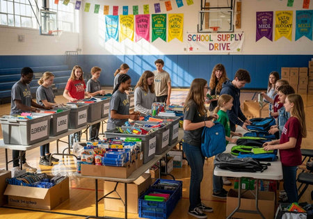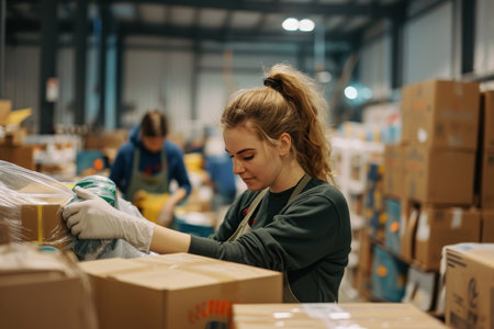 Young people working in a donations distribution center