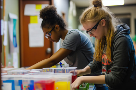 Unrecognizable girl recycling paper with her female teacher in an ecology classroom