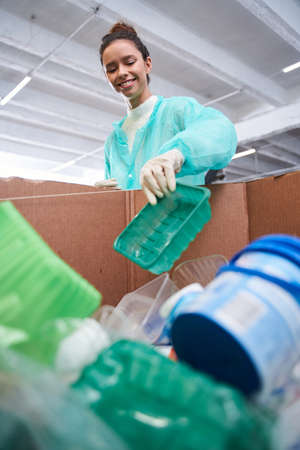 Woman carefully sorting wastes