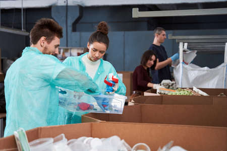 People disassembling different wastes