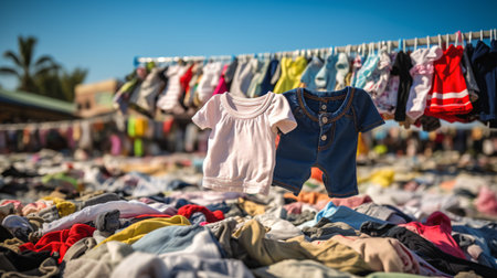Carmona Spain July 19, 2021 Various summer clothes sold at the local market in downtown during Coronavirus outbreak hitting Spain, wearing a mask is mandatory