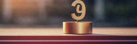 A close-up of a golden trophy featuring the number nine, symbolizing achievement and recognition, placed elegantly on a wooden surface with soft light.