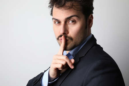 Businessman silent quiet gesture with finger
