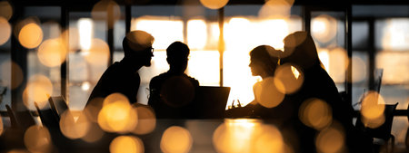 Silhouette photo of business team working together late at night in office. Catching up deadline.