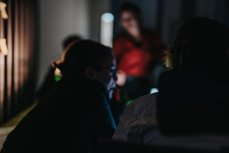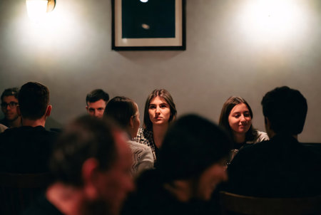 defocused audience watching theater play.