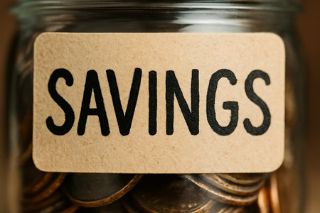 Money in a glass jar, saving money saved