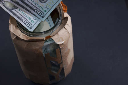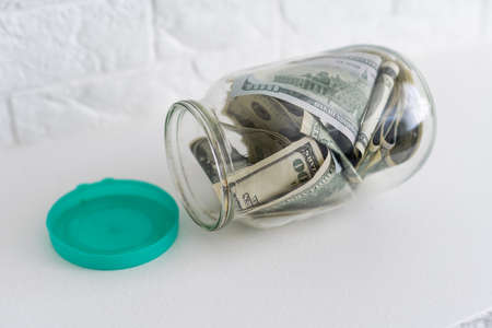 Glass jar full of the American banknotes