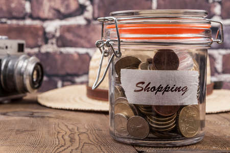 money in the jars on the table, savings for vacation