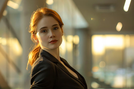 Portrait of business woman in formal outfit working in modern workplace with her colleagues in background.