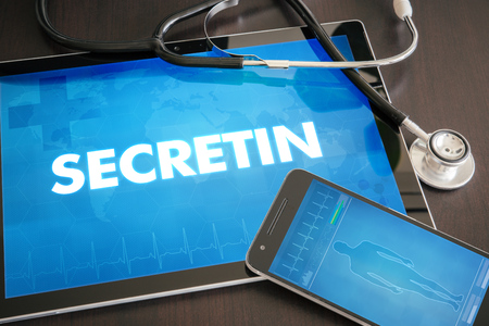 Secretin (gastrointestinal disease related) diagnosis medical concept on tablet screen with stethoscope.