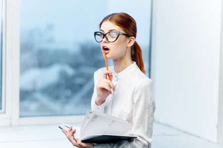 Red inscription TOP SECRET on a white sheet. Secrets and conspiracies. Archives of documents. Financial statements.