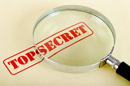 Top secret. The text label on the folder with confidential documents. A secret with access restrictions.