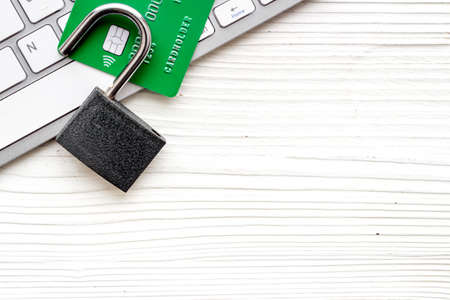 Credit card with password key lock, finance saving and security shopping online concept.
