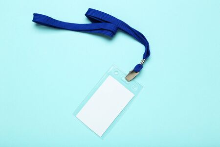 Three blank ID card lanyards with different colors blue. white. and black. Perfect for showcasing your branding or company logo.