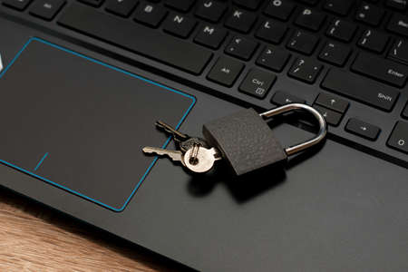 closed padlock on the laptop keyboard data protection concept internet censorship. High quality photo